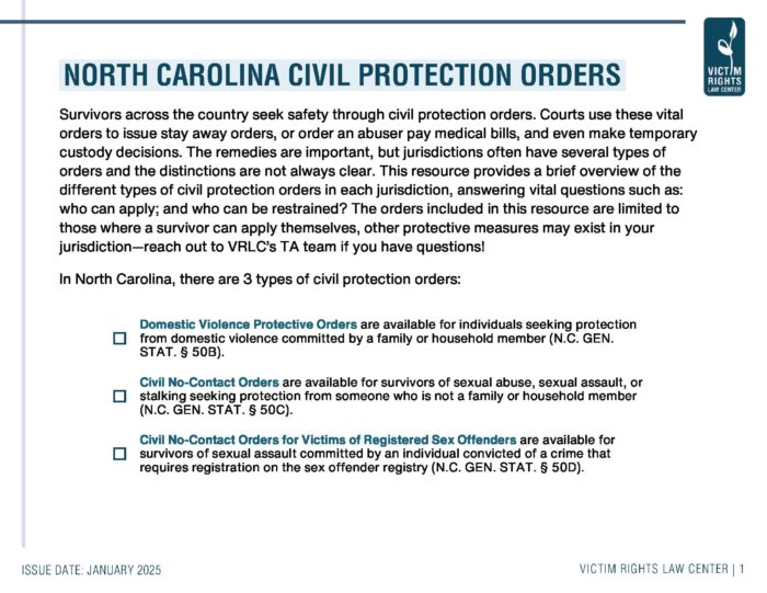 This resource provides a brief overview of the different types of civil protection orders that may be available to survivors, answering vital questions such as who can apply, who can be restrained, and how to apply.