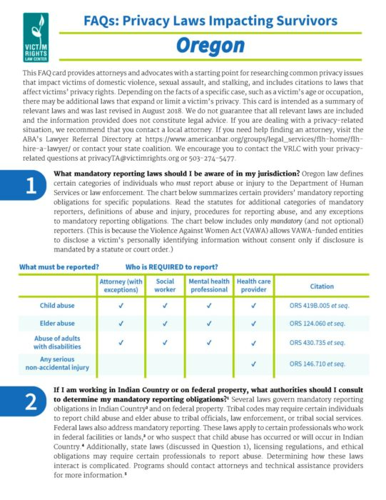 This FAQ provides attorneys and advocates with a starting point for researching common privacy issues that impact victims of domestic violence, sexual assault, and stalking, and includes citations to laws that affect victims’ privacy rights.